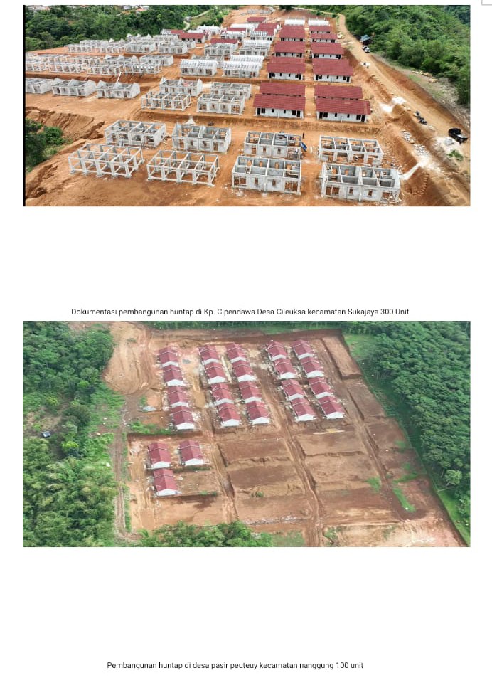 Selain itu, dilakukan akselerasi pembangunan Hunian Tetap (HUNTAP) beserta Pra Sarana Umum (PSU) sebanyak 400 unit di Desa Pasir Peuteuy (Nanggung) dan Cipendawa (Sukajaya). PSU yang dibangun meliputi jalan, drainase, tembok penahan tanah, air bersih, dan penerangan jalan tenaga surya.