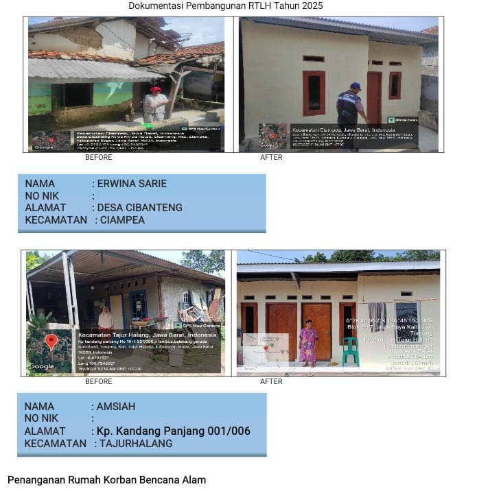 Kondisi Kabupaten Bogor yang rawan bencana (banjir, longsor, angin kencang) membuat penanganan rumah korban menjadi standar pelayanan minimal DPKPP. Pada tahun 2025: