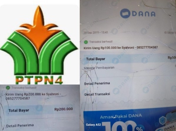Bukti Transfer beberapa kali melalui Dana atas nama Syahroni diduga keterkaitan dengan sewa Blok berujung maut di PTPN IV Regional ll unit kebun Bahjambi Afdeling ll.