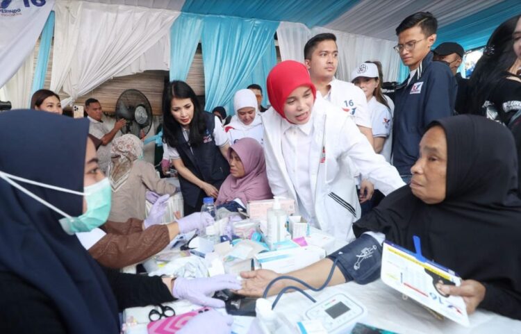 Ketua Umum Kartini Perindo, Liliana Tanoesoedibjo menghadiri kegiatan Bazar Murah dan Pengecekan Kesehatan Gratis di Pengadegan Timur III, Jakarta Selatan, Sabtu (20/1/2024).