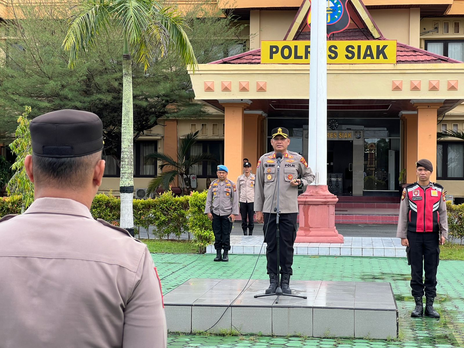Kapolres Siak, AKBP Eka Ariandy Putra, S.H., S.I.K., M.Si.,memimpin langsung apel pagi rutin yang digelar di lapangan apel Mapolres Siak pada Rabu (14/5/2025). Apel pagi ini menjadi momentum penting untuk menyampaikan arahan,apresiasi,serta penekanan disiplin kepada seluruh personel Polres Siak.