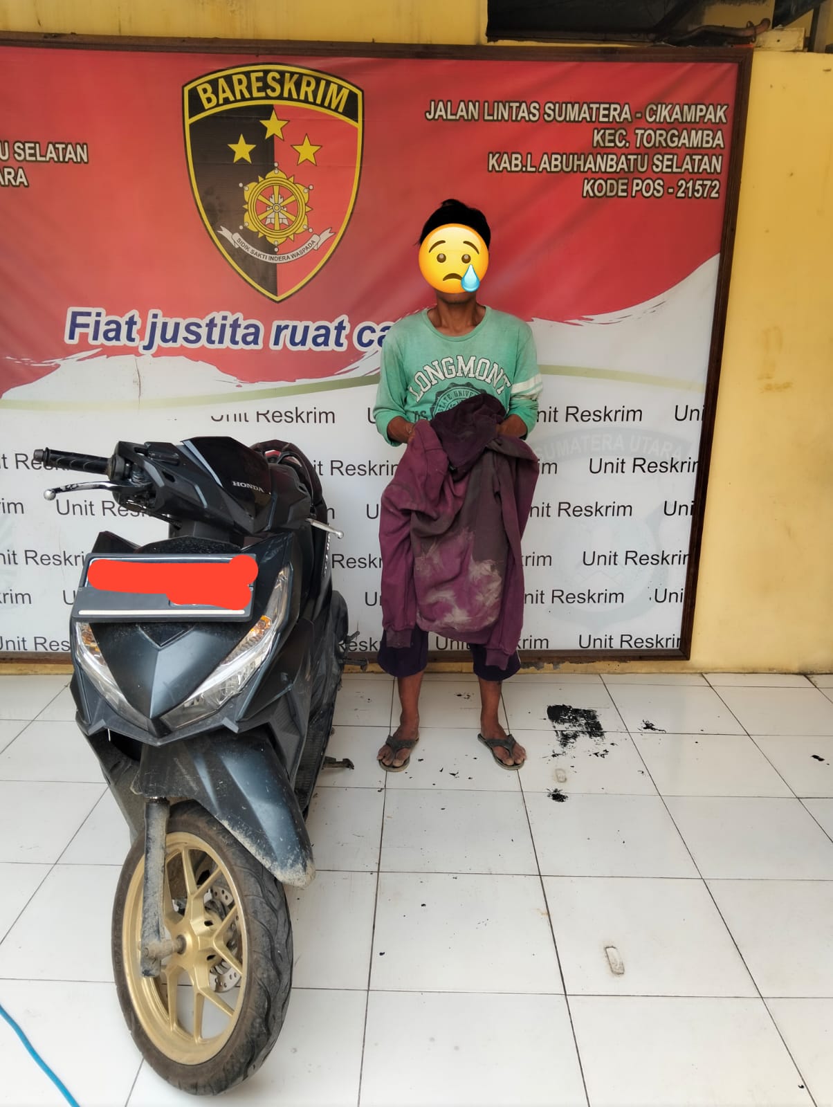 “Pelaku kemudian melarikan diri menggunakan sepeda motor korban ke arah Kotapinang. Akibat kejadian tersebut, korban mengalami kerugian materi sekitar Rp4,2 juta,” jelas Kapolsek.