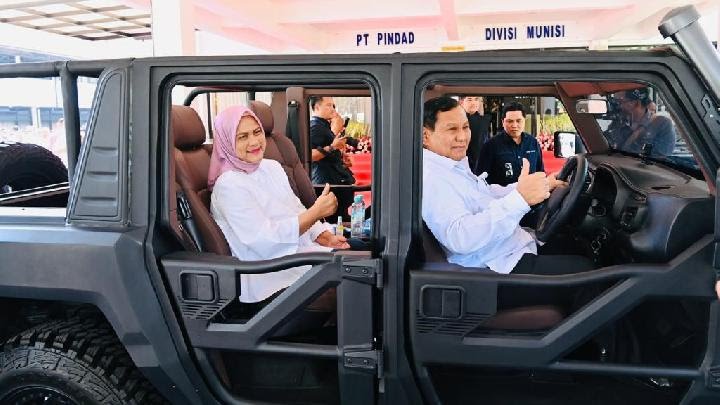 Menteri Pertahanan Prabowo Subianto nampak menyopiri Menteri BUMN Erick Thohir serta Presiden Joko Widodo atau Jokowi beserta istrinya, Iriana Jokowi menggunakan Maung Pindad saat berkunjung ke PT Pindad Malang, Jawa Timur. Dalam foto yang diunggah Erick Thohir di medsosnya, nampak Prabowo duduk di kursi sopir sementara Erick berada di sebelahnya dengan Jokowi dan Iriana di kursi belakang.
