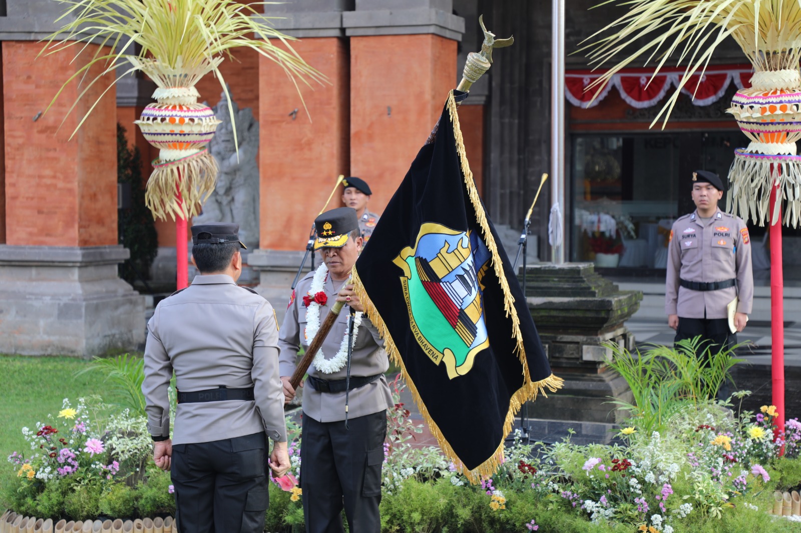 Farewell parade dari Kapolda Bali yang lama, Irjen. Pol. Drs. Putu Jayan Danu Putra, S.H., M.Si., yang saat ini menjabat sebagai Perwira Tinggi Baintelkam Polri serahkan pataka Polda Bali “Sura Dwipa Sarvabhavena” kepada Kapolda Bali baru Irjen. Pol. Ida Bagus Kade Putra Narendra, S.I.K., M.Si. Penyerahan pataka ini sebagai simbol peralihan kepemimpinan.