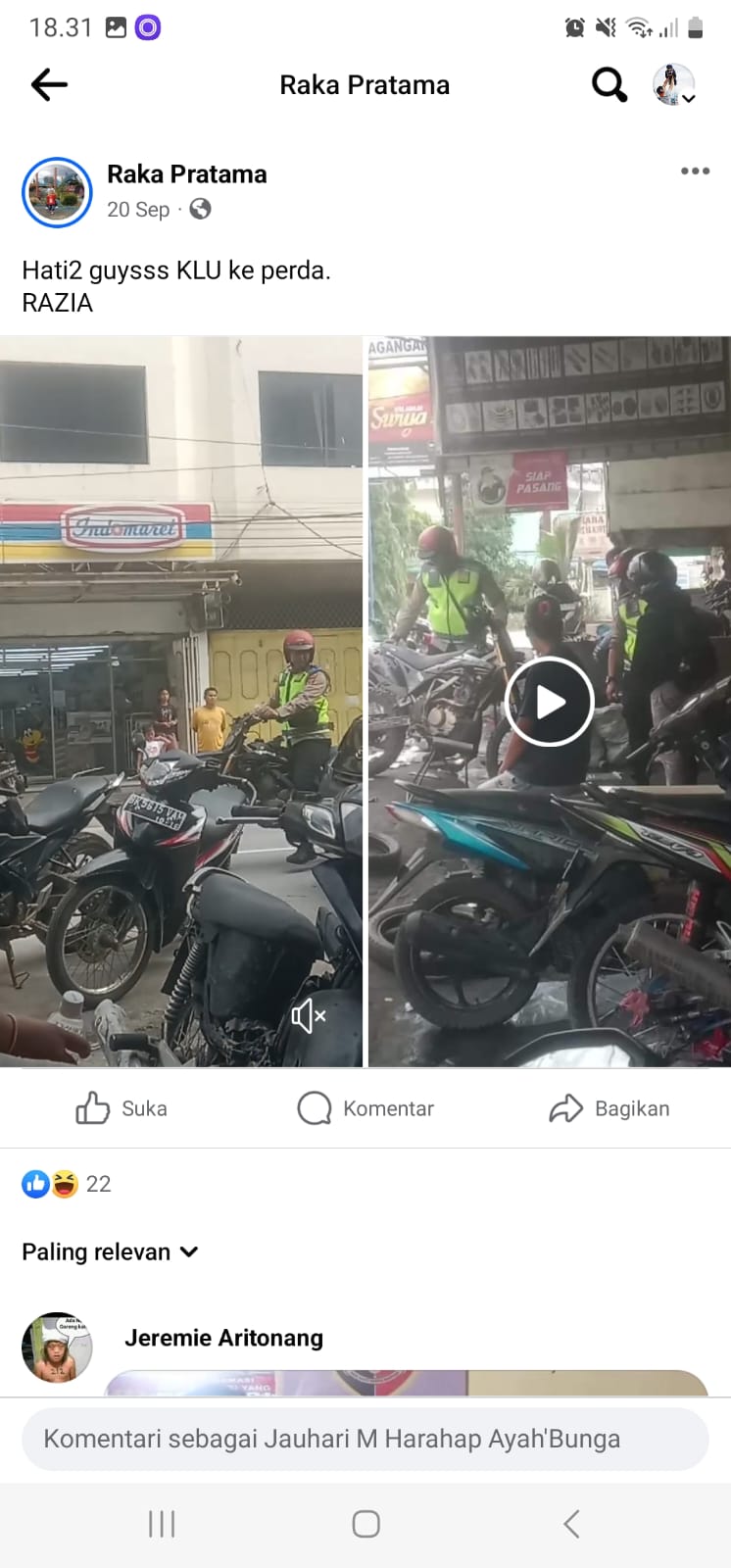 Video tersebut memicu perhatian warganet setelah diunggah oleh akun Facebook Raka Pratama dengan keterangan “Hati2 guysss KLu ke perda, Razia”. Boy Hutapea, dalam sebuah video klarifikasi, mengaku bahwa video yang diunggah oleh Raka Pratama adalah Hoax.